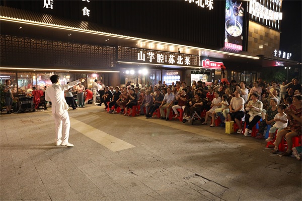 “瀆上·老西門”新時代文明實踐街區(qū)自開街以來一直是市民們享受夜間文化生活的新潮聚集地。入夏后,鹽都區(qū)精準(zhǔn)對接群眾需求,因地制宜組織了一系列高顏值、高品位、高質(zhì)量的夜間文明實踐活動。“登瀛老茶館”安排了各類經(jīng)典劇目,讓喜歡傳統(tǒng)戲曲的群眾過足癮;露天劇場喚起大家童年美好記憶,同時展示了中國幾代人拼搏奮斗的記憶;騰飛書局擁有豐富的閱讀資源開展全民閱讀,積極打造本地文化名片。