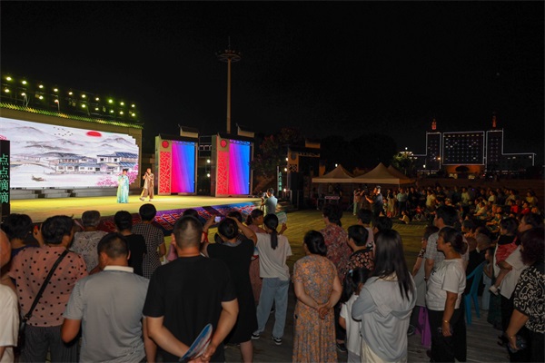 鹽都區(qū)新時代文明實踐主題公園(世紀(jì)公園)月亮廣場舞臺前座無虛席熱鬧非凡,不少在公園散步、納涼的群眾紛紛駐足觀看?;顒釉谖璧浮顿澷澬聲r代》中拉開了序幕,淮歌、情景劇、折子戲等節(jié)目輪番上演,為社區(qū)居民帶來一場精彩的視覺盛宴,演出精彩紛呈、高潮迭起,熱烈的掌聲此起彼伏。活動現(xiàn)場還播放了短片《文明“鹽”值高 點亮“都”星夜》和《點亮星夜——新時代文明實踐在鹽都》,集中展示全區(qū)“點亮星夜”夏季晚間新時代文明實踐主題活動啟動以來,各地活動開展情況。